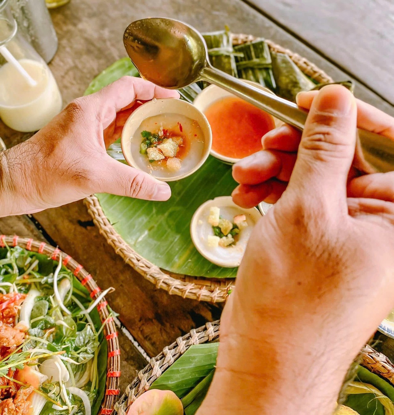 Nét thú vị khi ăn bánh bèo Nha Trang nằm ở chỗ ăn xong chén nào chồng ngay chén đó lên nhau.